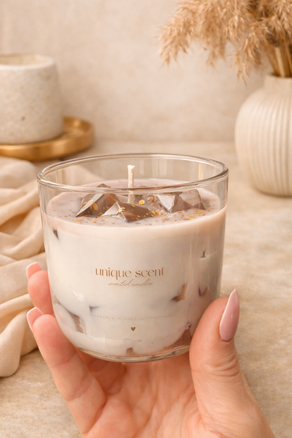 Breng de warme sfeer van jouw favoriete coffee bar naar huis met de zelfgemaakte iced coffee candle. Met haar romige tinten, subtiele goudaccenten en heerlijke koffiegeur is deze kaars een echte eyecatcher én geurbeleving in één.